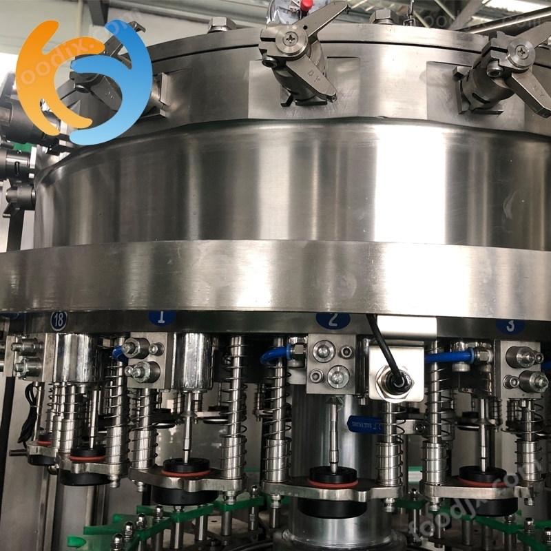 玻璃瓶啤酒生產線采用二次抽真空,二次灌裝。比含氣飲料灌裝還要*,灌裝原理;通過人工或者理瓶上瓶,輸送將瓶子運送到沖洗工位上,瓶夾將瓶子抓住沖洗,過后再進行一抽空氣、一邊灌裝的工作、直到灌裝完成后,輸入到理蓋器下方時,理蓋器下方的蓋子掉到瓶子上,經過壓蓋機的下方進行壓蓋工藝。一般不銹鋼的瓶子屬于易拉環的蓋子。設備可按照客戶的要求對瓶蓋的種類壓蓋進行定制。當理蓋器下方蓋子缺少時,頂端設備啟動,蓋子通過震蕩方式將蓋子送到下方蓋子通道。進瓶方式為夾式,使用高耐熱和耐磨損的聚乙烯橡塑夾頭,將啤酒瓶夾住時沖洗機組模塊轉動,沖洗泵啟動沖洗頭對著瓶內噴出水壓,瓶子清洗潔凈后,瓶夾將瓶子使用傳動星輪代入到灌裝閥下方,鐘形定中罩壓住瓶口,和瓶口接觸形成密閉條件。